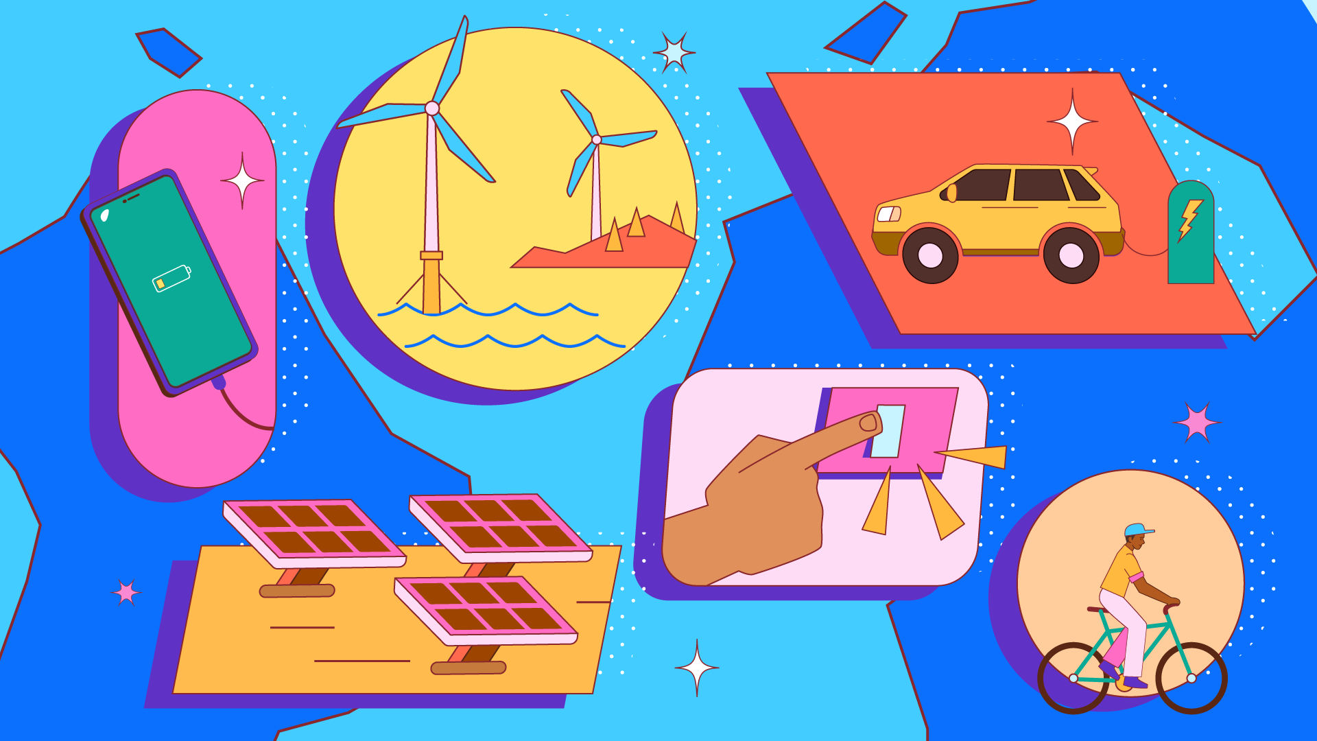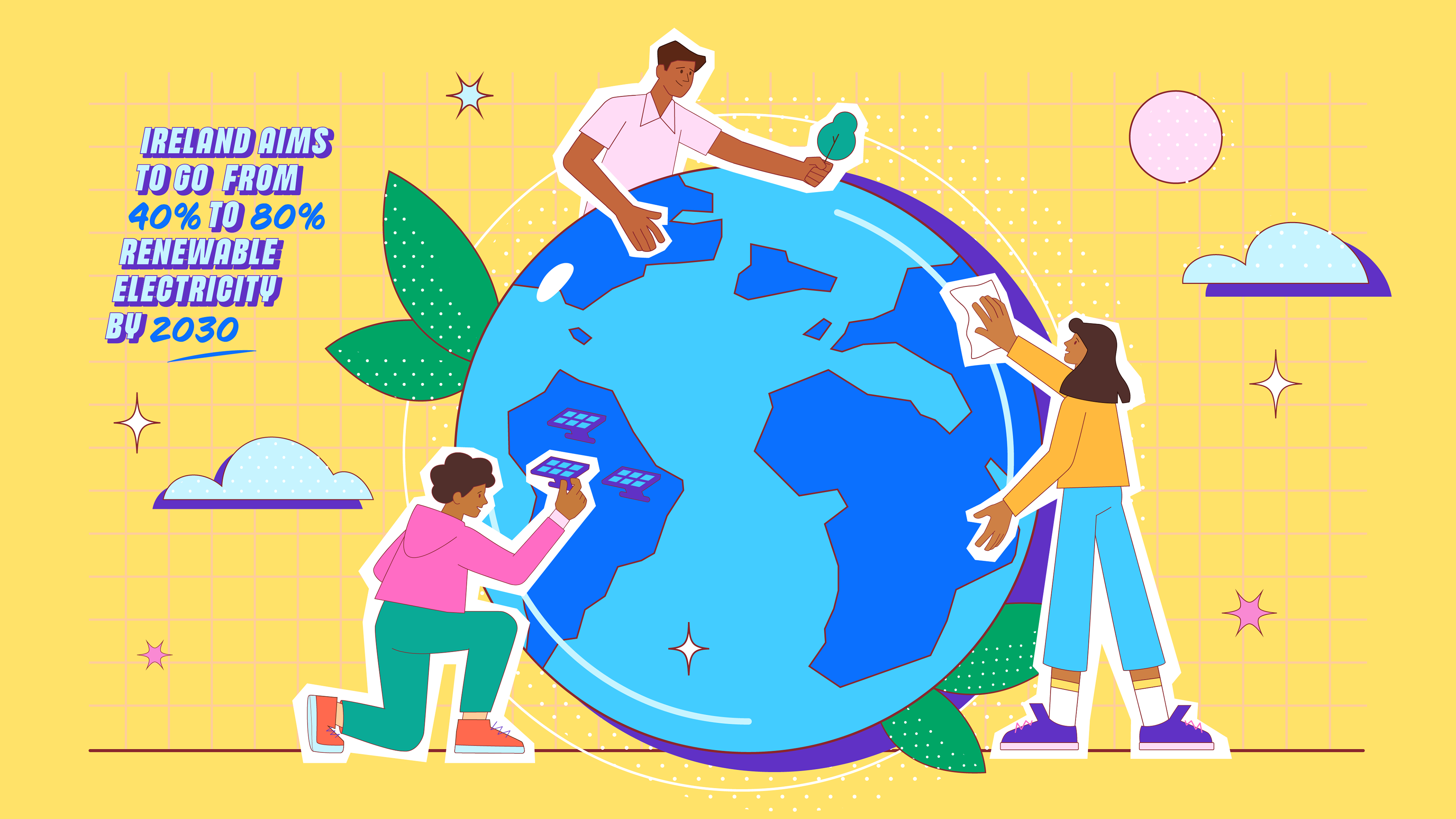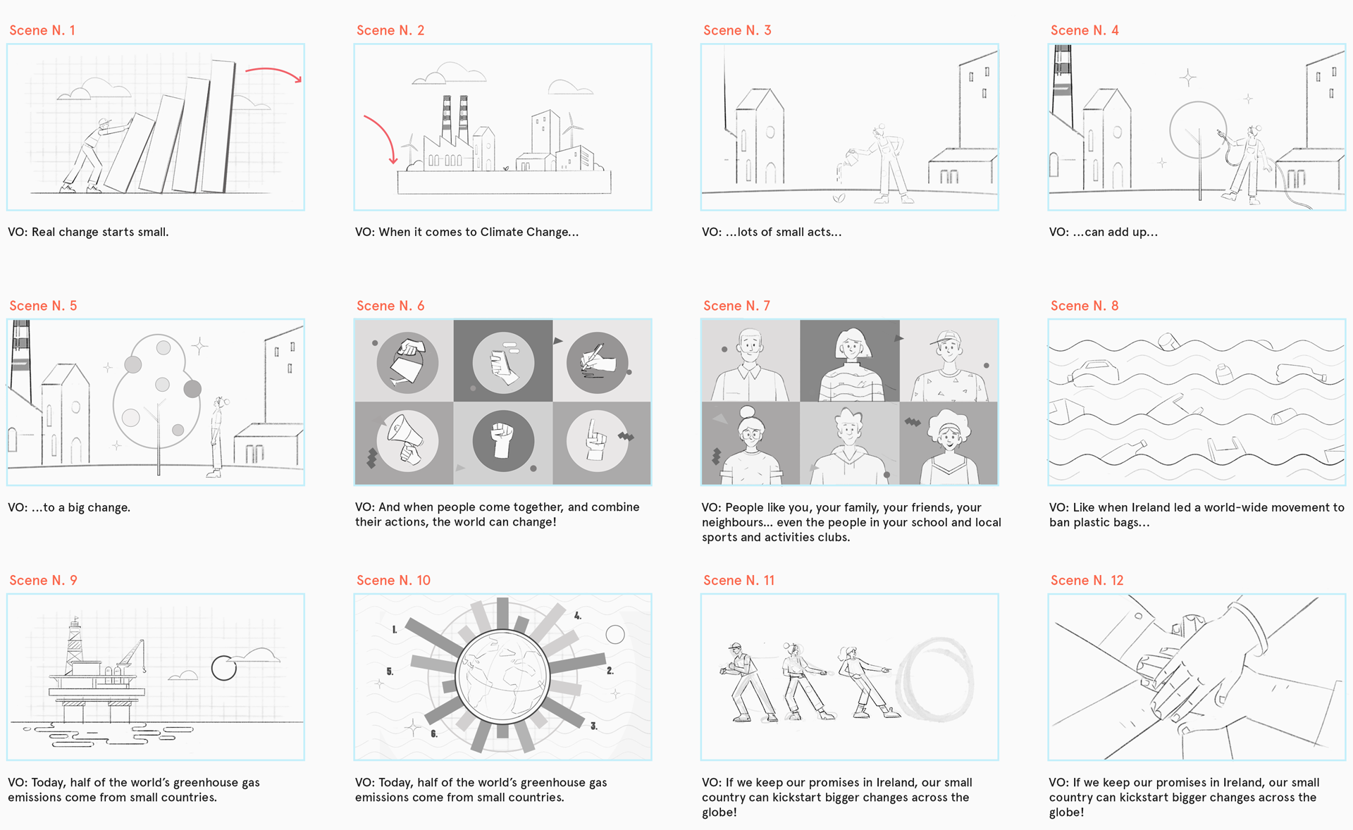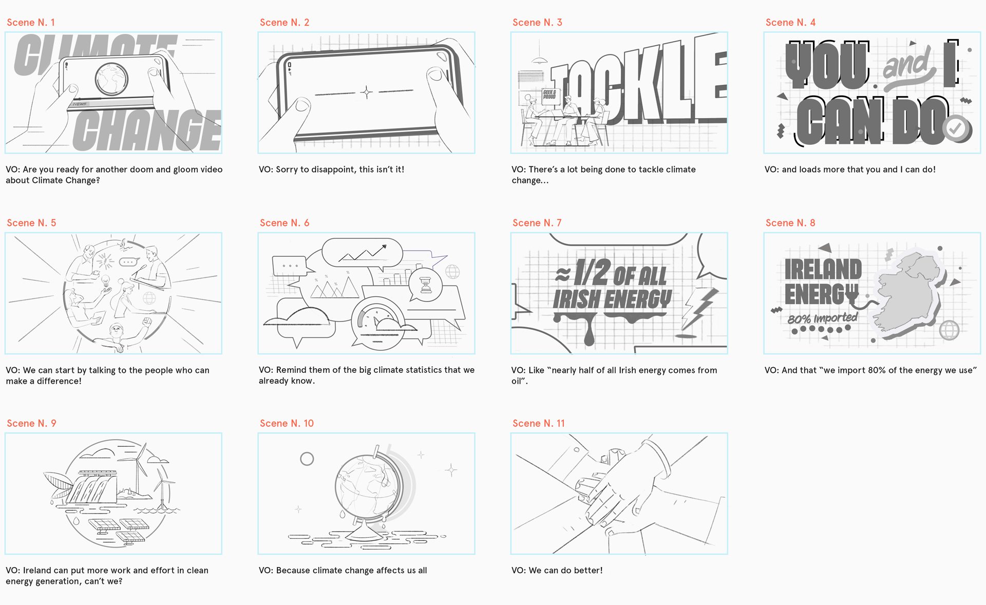 Ilustrações para vídeos animados sobre ações climáticas e uso de energia na Irlanda.